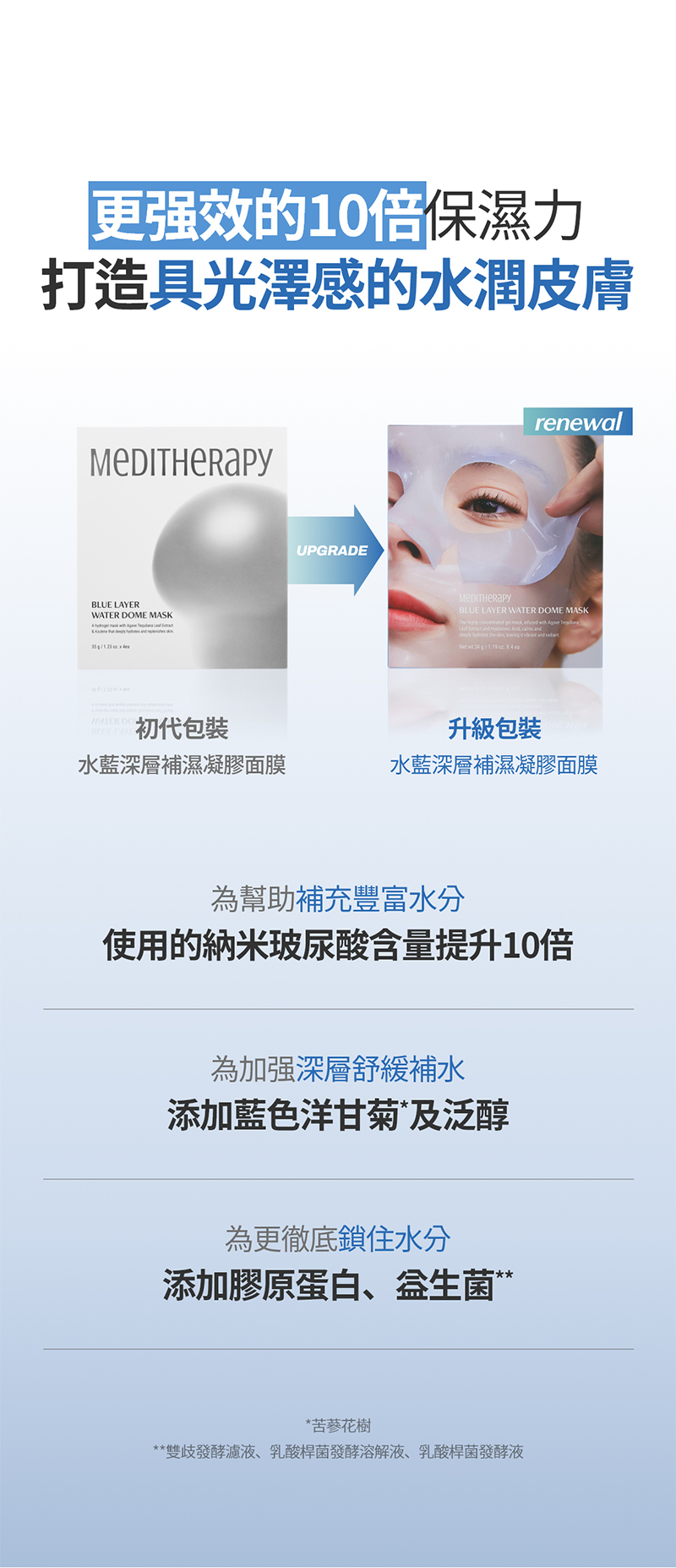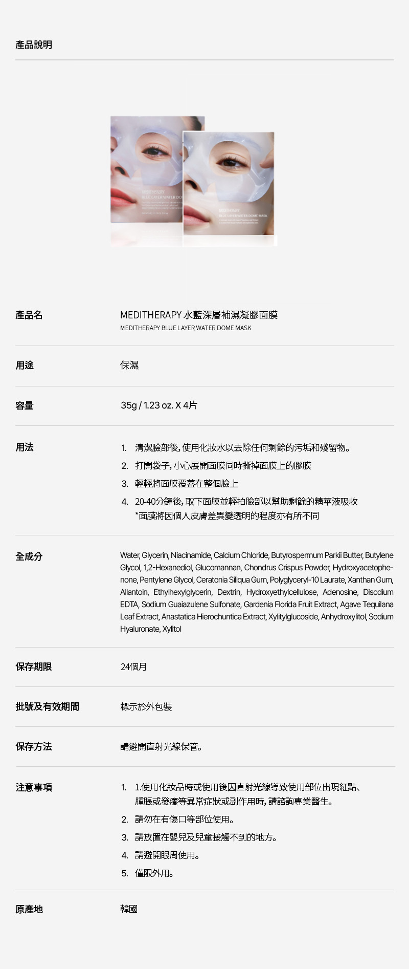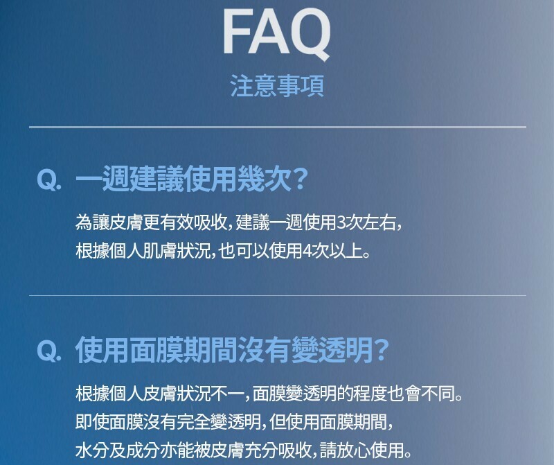 水藍深層補濕凝膠面膜產品特點:
