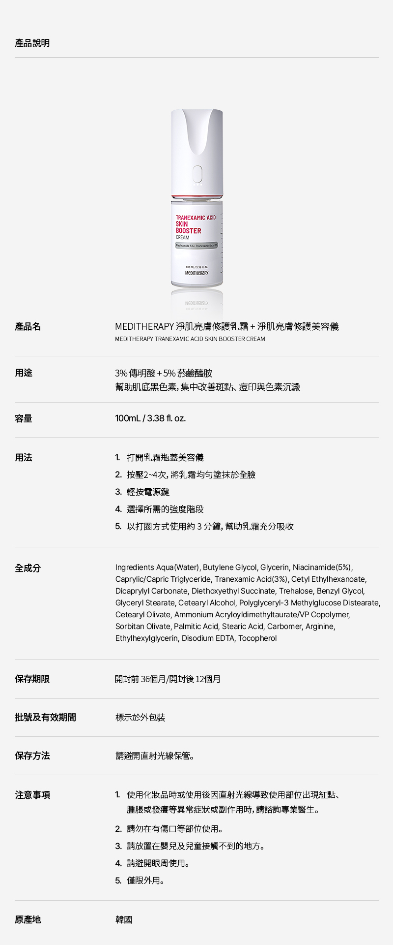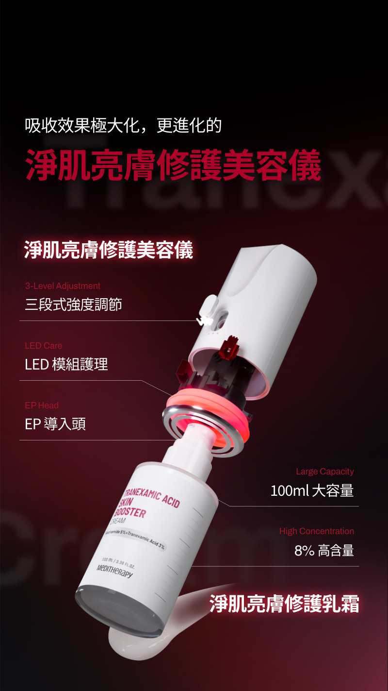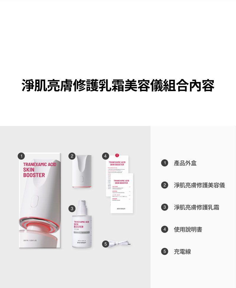 產品包含:淨肌亮膚修護美容儀+淨肌亮膚乳霜 (美容儀,乳霜是合為一體)
