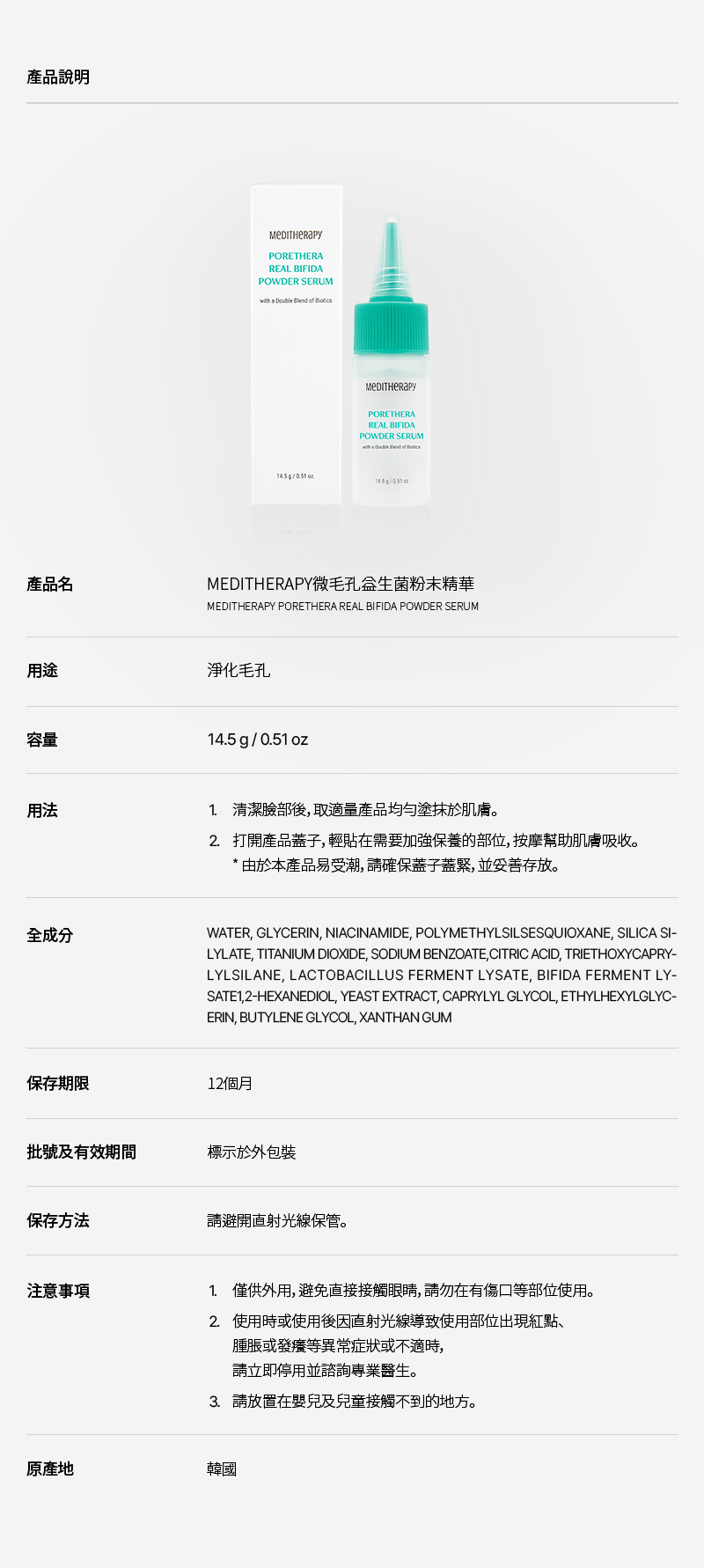 [1+1最低價組合] PORETHERA REAL BIFIDA POWDER SERUM 1+1